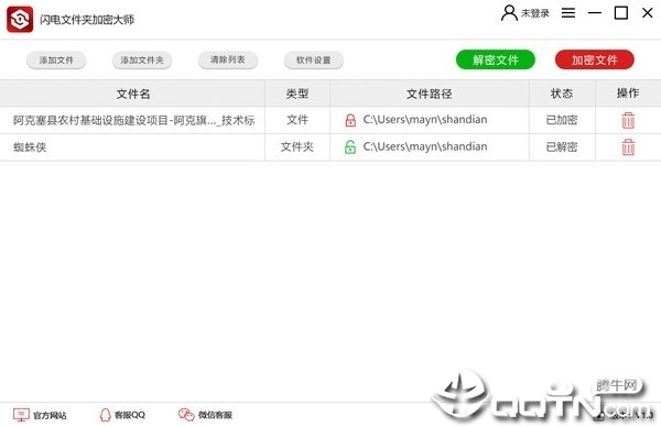 闪电文件夹加密大师是一款专业强劲的数据加密软件,采用美国联邦政府的一种区块加密标准-AES加密,加密速度快、安全性高、资源消耗低,不仅拥有文件(夹)加密、解密、打开等功能,而且本地加密/解密,更安全,更高效,同时界面简洁,操作方便,一用即会,让闪电文件夹加密大师成为您文件(夹)加密的好帮手!