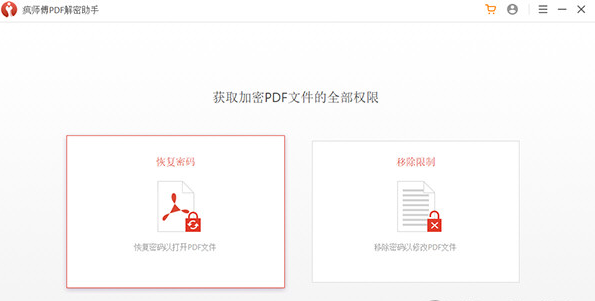 疯师傅PDF解密助手是一款能帮助用户快速接触PDF文件密码的工具,支持恢复密码和移除密码两种方式打开PDF文件,能够帮助用户打开各种无法打开的PDF文件功能十分简单,有需要的朋友不要错过了,欢迎下载使用!