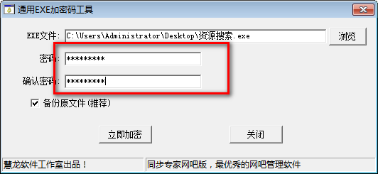 二、设置密码,主要要备份原软件,因为软件只能加密。