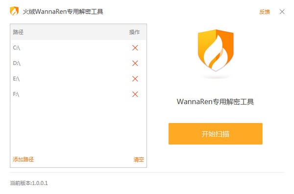 安装运行后,只需点击“开始扫描”即可对被WannaRen勒索病毒加密的文件进行一键全盘解密,也可以将文件直接拖入工具框进行解密,无需其它操作。如果大家在使用中遇到其它相关问题,可随时联系我们获得帮助。