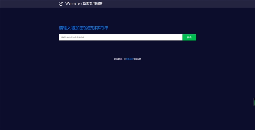 wannaren勒索专用解密是一款由csdn论坛网友提供分享的勒索病毒专用解密工具,用户只需输入被加密的密钥字符串,就可以快速获得解密密码,从而顺利解锁被感染的文件。被勒索病毒加密的朋友千万别支付比特币,使用这款工具即可快速搞定。