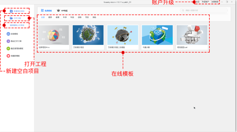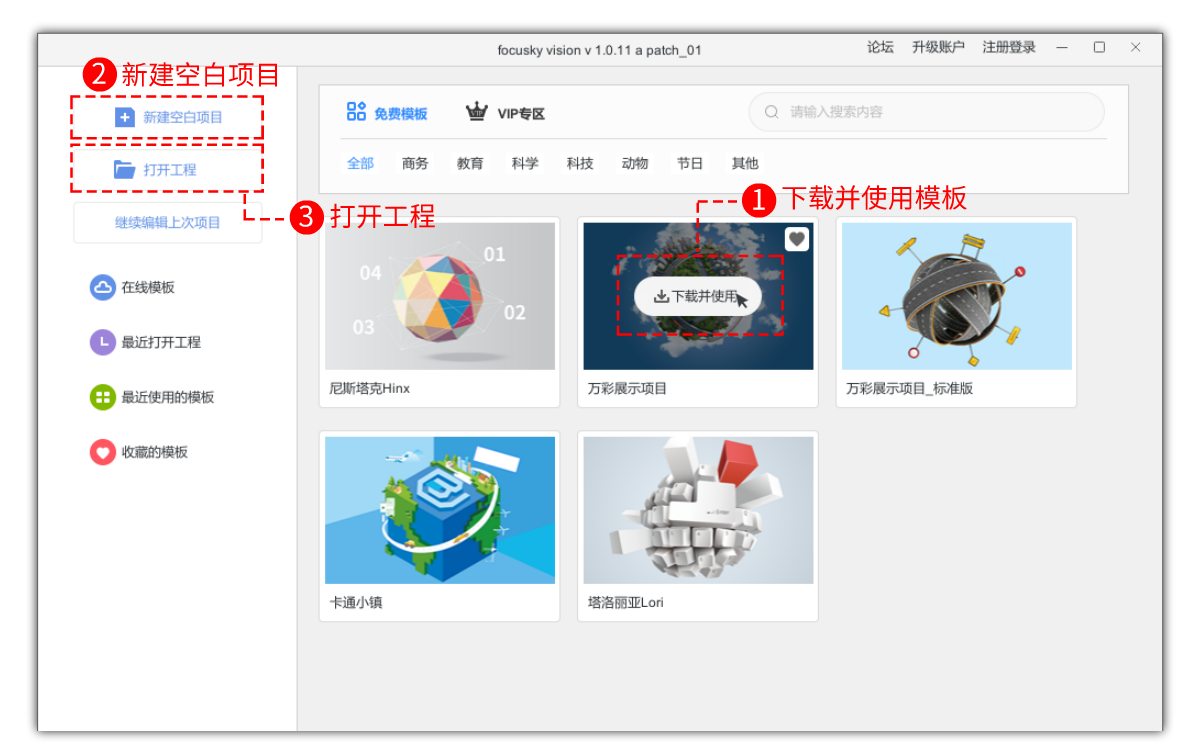 (2)新建空白项目。提供一个精美的3D场景,可自由添加任意镜头;