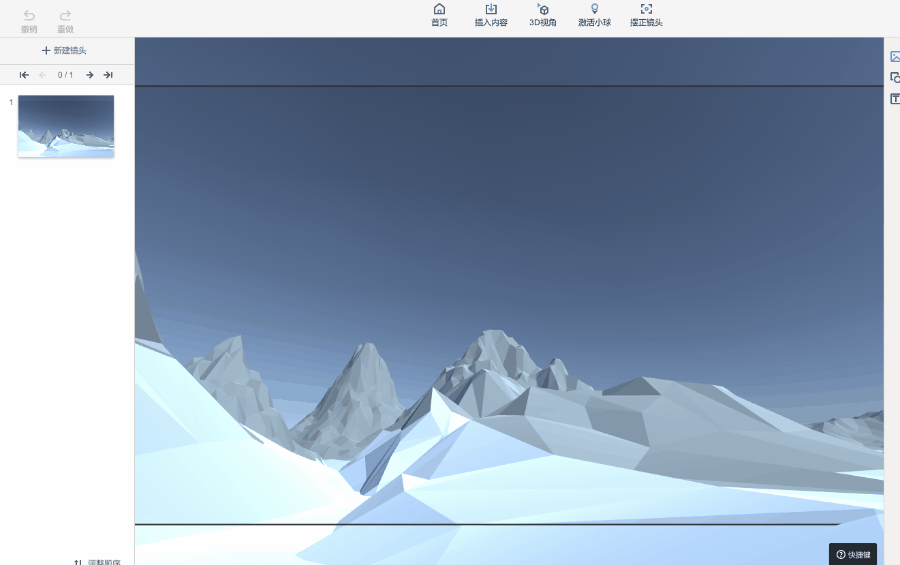 在镜头中添加文字描述和图片可丰富演示内容,突出重点,有效增强演示传递性及视觉效应。目前仅支持插入图片与文字内容到镜头中。