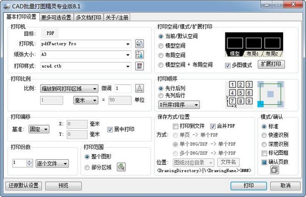模型空间多图批量打印;多个布局空间多图或单图批量打印。