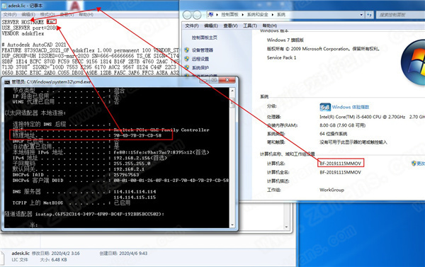 10、右键记事本编辑破解许可证文件adesk.lic里面填上您的计算机名和MAC地址,编辑好之后保存;