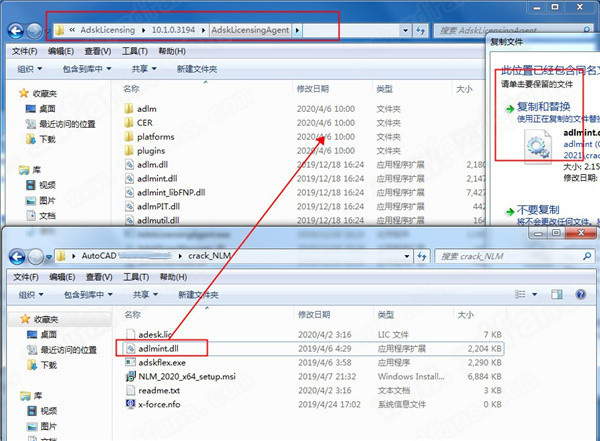 9、再将xf-adsk2020-netcrk-win文件夹下的“adlmint.dll”复制到软件许可证管理器目录下;默认安装目录【C:\Program Files (x86)\Common Files\Autodesk Shared\AdskLicensing\10.1.0.3194\AdskLicensingAgent】