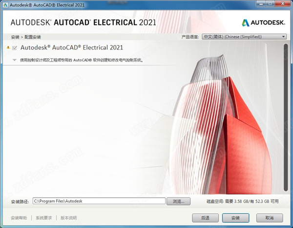 1、下载解压,得到autocad electrical2021中文原程序和Crk破解文件夹,首先运行"AutoCAD_Electrical_2021_Simplified_Chinese_Win_64bit_dlm_001_002.sfx.exe"开始安装;
