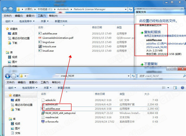 8、再将xf-adsk2020-netcrk-win文件夹下的“adskflex.exe”复制到软件许可证管理器目录下;默认安装目录【C:\Autodesk\Network License Manager\】