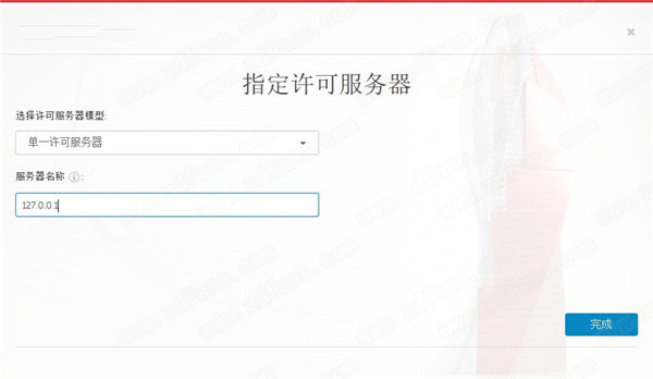 17、选择单一许可服务器,服务器名称为127.0.0.1;
