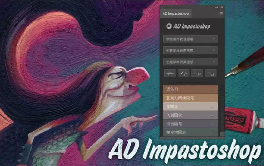 AD Impastoshop是一款PS的特效插件工具,能够用户提供一键石膏、帆布、湿笔、雕刻和油画特效,拥有多种特殊效果,能够让你的作品更具风格,感兴趣的朋友不要错过了,欢迎下载使用!