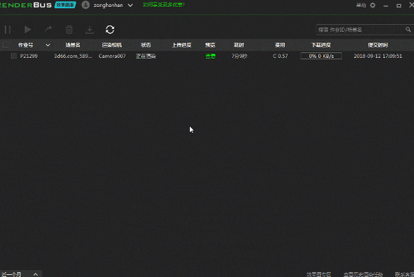 5. 设置完成后,点击提交按钮,完成后,即可在客户端“我的上传”模块,查看任务的上传进度。省去了分析任务的时间,大大提高了渲染效率。