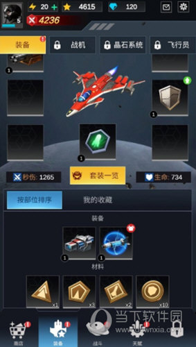 同样的提升方式还包括装备系统,在这里你可以收集装备并用于战机强化,其他还有战机的型号的选择、晶石系统和飞行员。