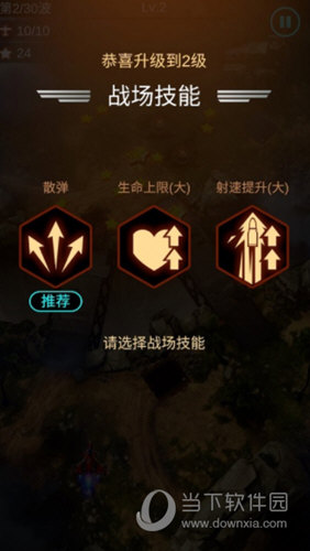 孤独战机中,通过战斗累积的经验值可以升级,每提升一级玩家都能在三选一的战场技能中进行挑选。