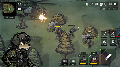 2、每位角色都有不同的能力,有的注重攻击有的注重防御。卡通色调之中加入了军事风格的色彩。