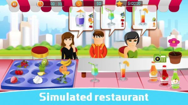 在炎热的夏天能来一杯清凉冰爽的果汁是一件非常惬意的事情,玩家在游戏里面经营着一家果汁店,你可以根据顾客的口味来为他们制作各种水果的果汁,鲜榨现卖的果汁更能吸引顾客前来品尝,你可以用出售果汁的利润来升级扩大你的果汁店,这样可以吸引到跟多的顾客前来消费。